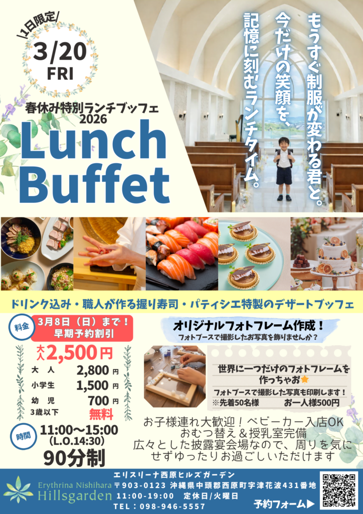 今回は3月20日(金・祝)に行われる春休み特別ランチブッフェのお知らせです!🌸